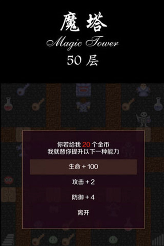 1、魔塔50层是—款经典的像素RGB打怪游戏。