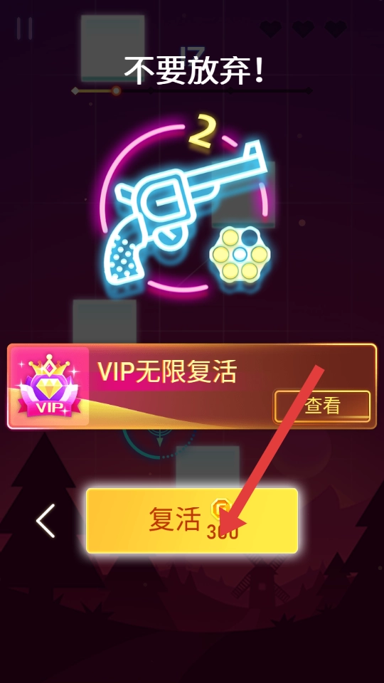 当生命值耗尽时,你可以选择消耗300金币来复活,从而继续进行游戏,这样就能避免因为失败而中断闯关的进程,进而争取通过更多的关卡。