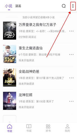 在书架页面,点击右上角的更多选项图标(三个点)。