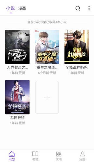 首页会展示用户的私人书架,所有收藏的小说与漫画都会存放在这里,便于用户随时查阅和继续阅读。