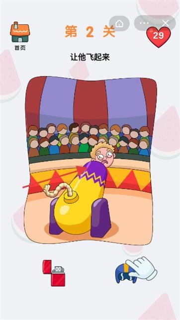 进入关卡后,会出现清晰的任务指示,像“让他飞起来”“改善视力”这类。以“让他飞起来”这个任务来说,需要留意场景里的各种元素,从中找出适配的道具。