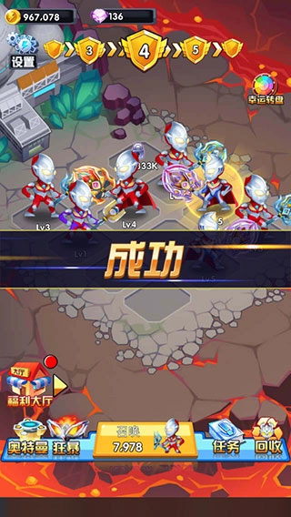 2、拖动奥特曼至脚下有颜色标识的区域可进行升级操作
