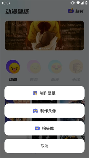 进入动漫壁纸,点击右上方“自制”