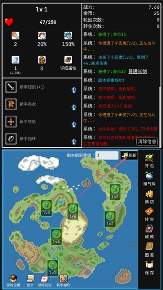 在战斗里战胜像小幽灵Lv1、小魔鬼Lv1这类怪物,就能得到无段轻甲、弑盗太刀之类的装备来增强自身战力。