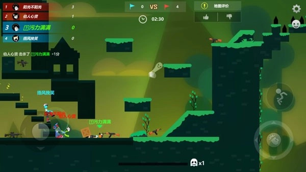 极简的画面风格清爽独特,操作简单易上手,能轻松完成跑跳、攻击等动作。游戏内武器道具种类丰富,玩法多样,还支持自定义地图。只要熟练掌握每个关卡的地形,就能轻松击败对手,和好友组队开黑,在各种场景中激斗,欢乐无穷。