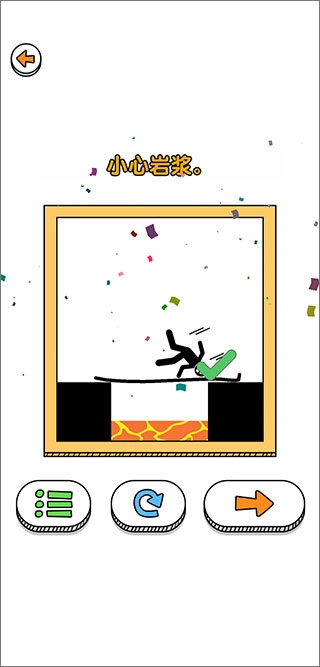 6、如果多次尝试仍然无法避免火柴人落入陷阱。