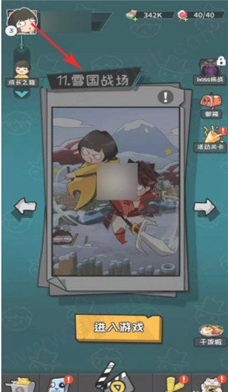 2、通关11关雪国战场即可解锁霸王枪碎片,如下图所示。