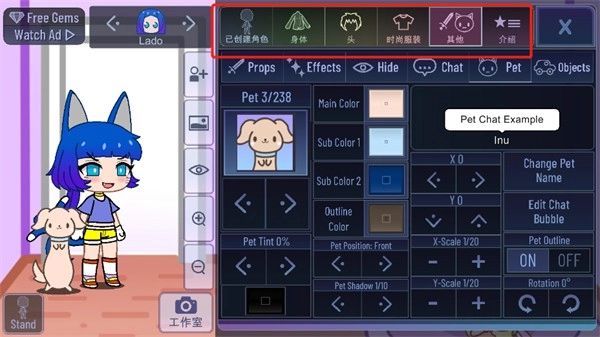 2、创造角色后,我们可以修改身体、头等形象属性,还可以给你的角色穿上时尚服装选择宠物;