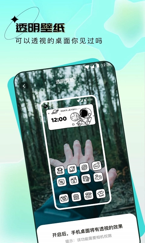 3、设置透明壁纸也是非常有趣,能看出来各种有趣的事情,让手机增加使用率。