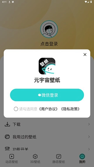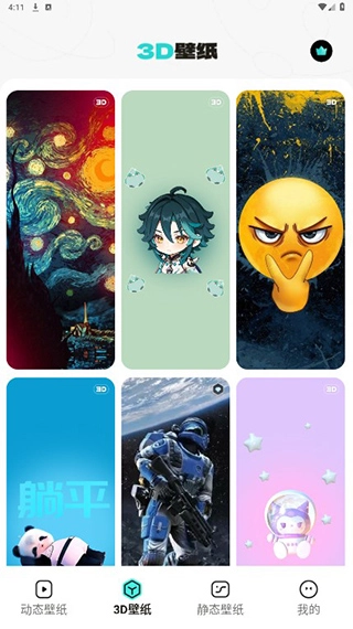 用户点击下方3D壁纸,可以进行3D壁纸的设置。