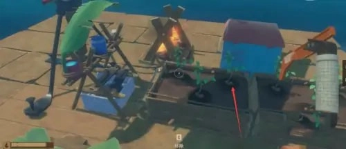 1、进入游戏后,首先要在木筏上备好淡水收集器、火、床等生活必需品