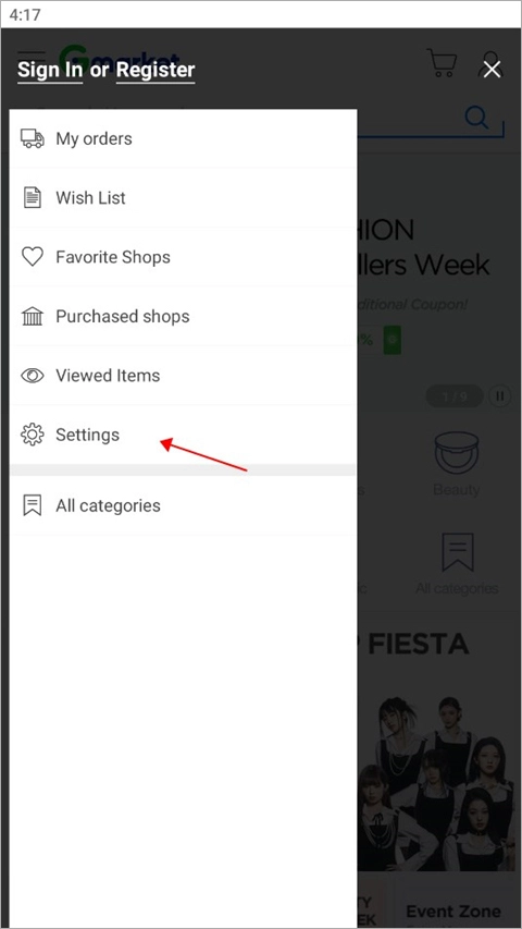 3、点击语言选项进行相关设置。 4、将语言选项调整为中文就可以了。 gmarket软件的优势 1、给出优惠的价格 还提供各类目以及促销活动优惠券 每个月都会向所有注册会员发放多种优惠券