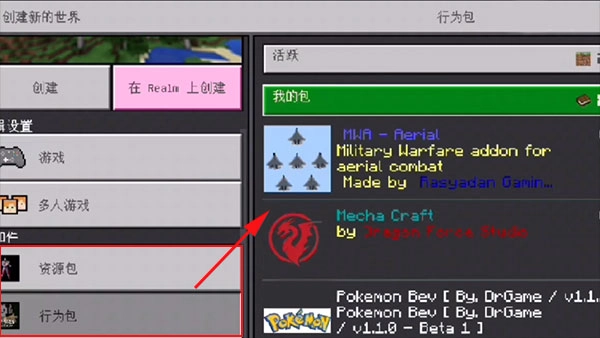 6、接下来回到游戏创建世界的界面,在“资源包”选项里就能选择刚才获取到的mod模组了
