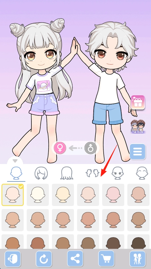 在角色装扮页面,下方设有发型、五官等装扮分类,通过滑动操作挑选发型样式,点击就能为角色更换发型,还可搭配五官、肤色等元素,借助自由组合这些装扮元素,塑造出独特的角色形象。