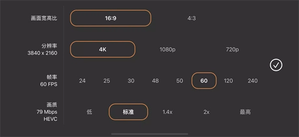 4、充分发挥您手机的影像潜能,可在超广角、广角与长焦镜头间灵活切换 • 支持HEVC及AVC压缩格式,录制码率可按需调整,最高能达到190Mbps 相机控制: