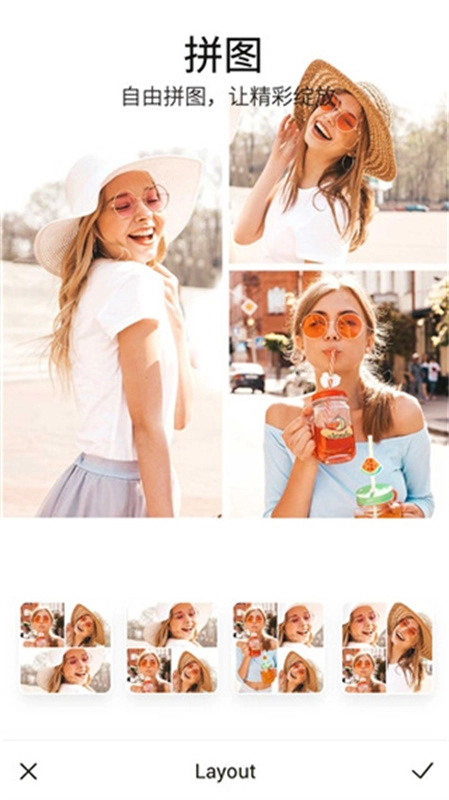 将你的照片拼接起来,通过布局、镜像、旋转等元素重新组合照片,让你充满乐趣。只需简单的操作,拼接出你的故事