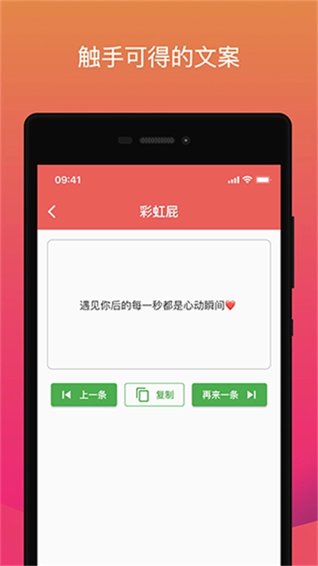 1、打开软件后,能看到里面有大量文案可供挑选,从中选择一条文案即可。