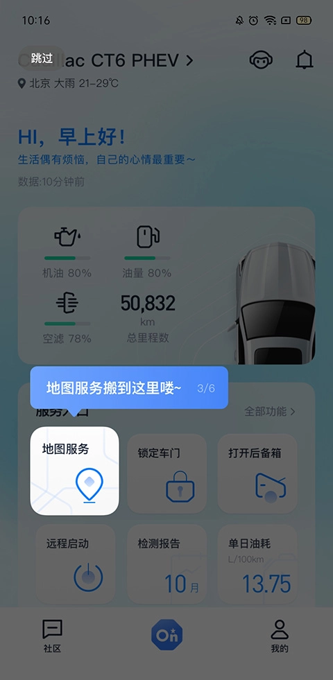 4、浏览车况信息,如燃油余量、机油寿命、可行驶里程等(具体信息以您的车辆配置为准)。
