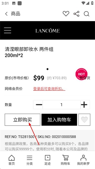 在商品详情页,点击“立即购买”按钮,就能完成商品的购买流程。