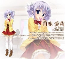 在ライゼルグ留学的温柔女孩,精通所有家务相关的事务。她措辞礼貌,总是为他人尽心尽力,平日里尽显温婉的女性气质。不过,由于她格外希望能有人向自己求助,内心怀着“想要侍奉主人”的愿望,甚至会对亲近的人提出“做我的主人吧”这样的请求。(清水爱同时也是柚子社第六作DRACU-RIOT中艾莉娜的配音演员)