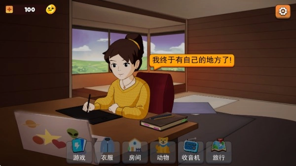 1. 就像下面这张图展示的,这就是属于你的房间啦!目前它还显得有些空旷,你可以通过完成任务来解锁并购买家具,把这里布置得更温馨舒适哦!