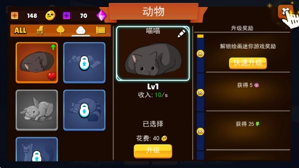 3.此外,还可以饲养猫咪、小狗等宠物,通过升级宠物,能够获取不同的奖励哦!