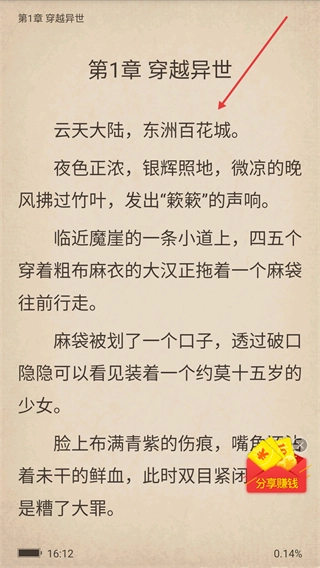 进入阅读页面后,就能开启【第1章穿越异世】的阅读之旅了。