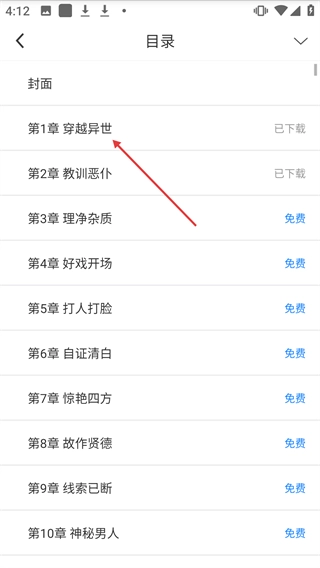 在目录页面点击【第1章穿越异世】进行阅读。