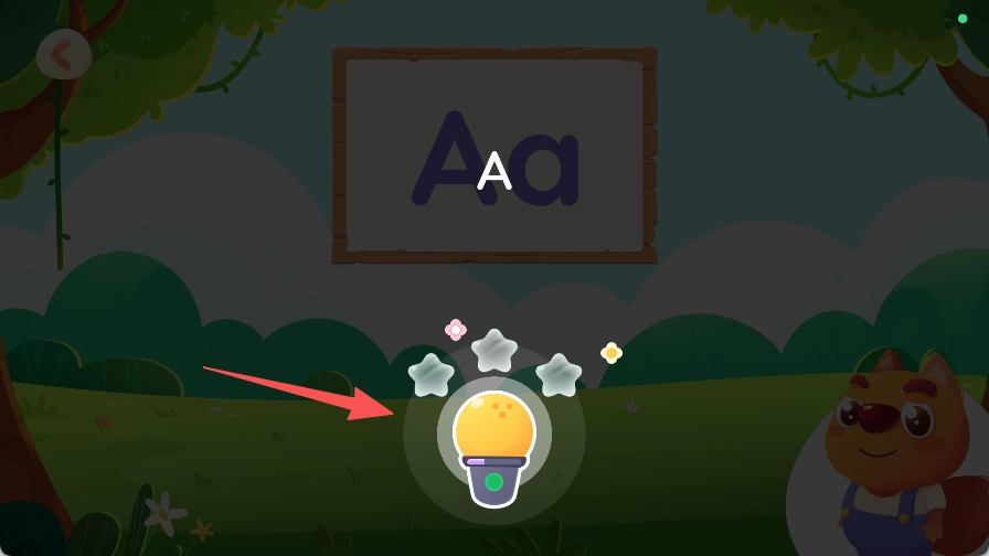 点击麦克风,读出屏幕上显示的字母,读准确就能得到奖励。