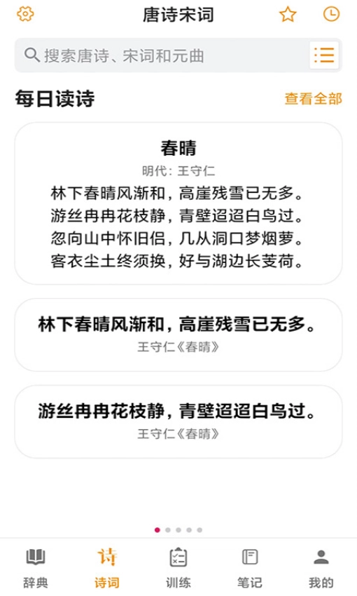 它还能帮你查找各类经典诗词,学生从中可以获取不少必背的古诗词。