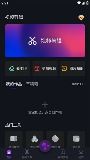 2、以极为简便的操作方式开启文件创作,剪辑出风格各异的视频作品
