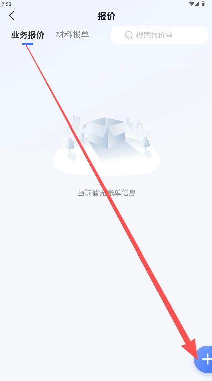 在报价页面找到“业务报价”选项卡并点击,接着点击右下角的“+”加号按钮来创建报价单。