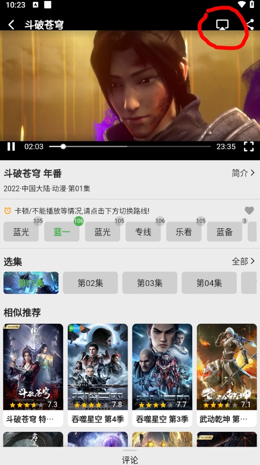 2、接着任意播放一部喜欢的影视资源,找到右上角的【投屏】按钮