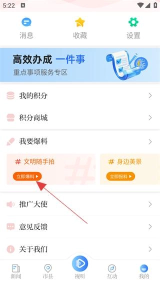 在个人中心页面,找到并点击【立即爆料】选项,即可进入新闻爆料的内容编辑界面。