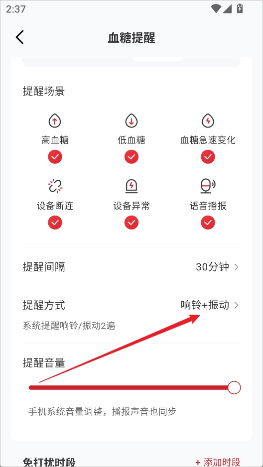 在提醒方式的选项里做出选择,就能切换成震动模式,或者把语音提醒关闭。