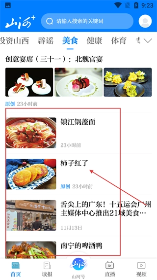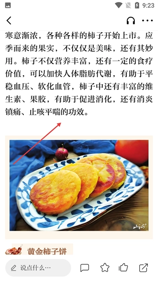 进入【美食】频道后,你可以浏览各种各样和美食有关的内容,挑选自己感兴趣的文章(比如【柿子红了】),点击就能进入详情页面。