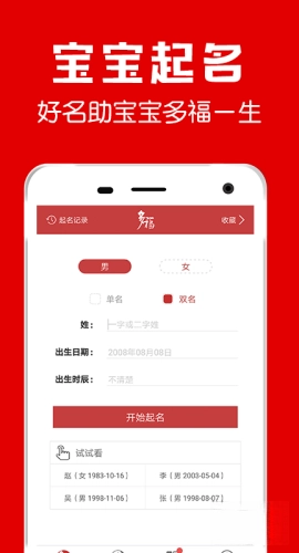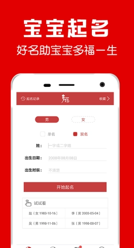 版本记录补充年出生宝宝适用的吉名 2.优化了部分操作流程