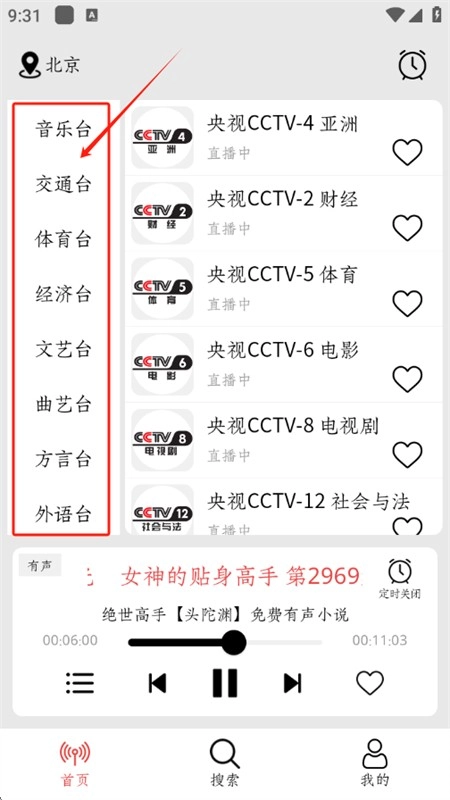 3、大家可依据自身需求挑选不同类型的电台内容,像音乐、交通、新闻之类的都可供选择。