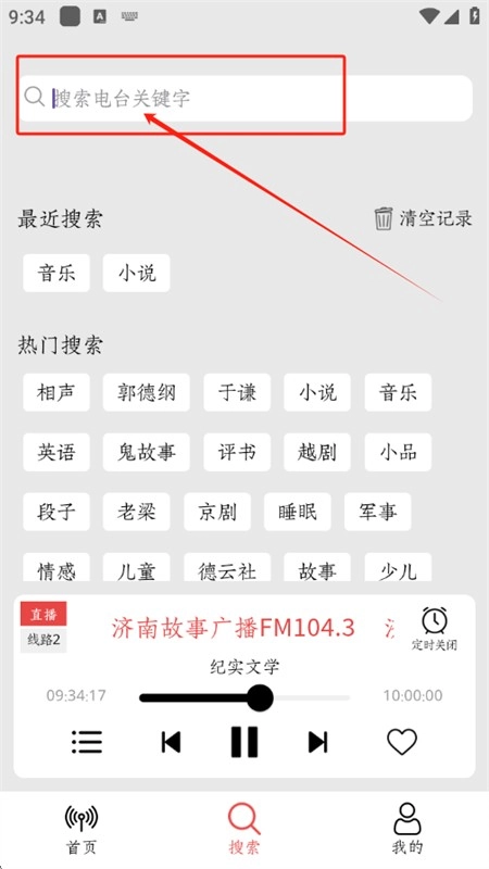 5、在搜索页面,可以直接输入电台关键字进行搜索