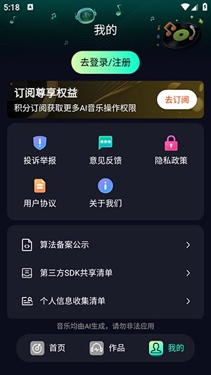 1、进入首页后,可依据自身所需创作的歌曲类型,选择极简模式、情景模式或纯音乐模式。