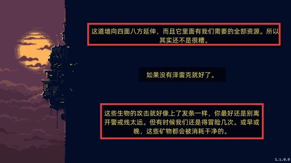 1、熟悉游戏环境,清楚【这道墙】内包含所有资源,但需警惕【泽雷克】以及具有规律攻击行为的生物,切勿远离警戒线,并且要明白矿物资源是有限的。