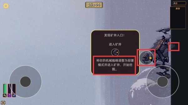 3、找到矿井入口后,按照提示把【机械蜘蛛切换至部署模式】,点击对应的按钮进入矿井,即可启动挖掘作业来获取资源。