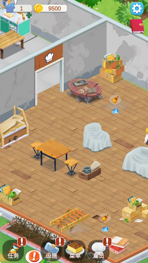 3、当然,新店开业免不了要打扫,清理店内的环境卫生,可以吸引更多的顾客,当顾客坐下后便可开始点餐,点击顾客头上的气泡即可等待后厨制作,返回厨房点击订单即可送到客人桌前,操作十分的方便。