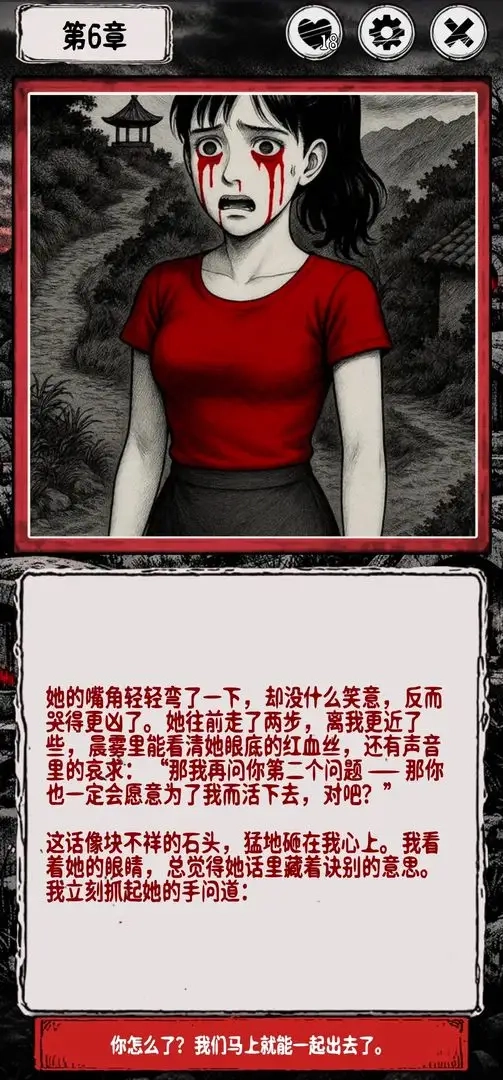 这个立绘真的挺带感的,诡谲的氛围一下子就拉满了,代入感超强——就像那种人迹罕至的老农村,大晚上看着都后背发凉。不过游戏形式是纯文字加图片,靠选选项推进剧情,要是一章里不小心触发了即死剧情,就得从头再来,有点耗时间,要是能加个存档功能就好了。