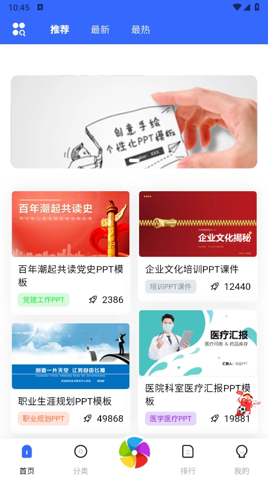 进入“分类”页面后,能看到这里汇集了答辩PPT、商务PPT等多种类型的PPT。