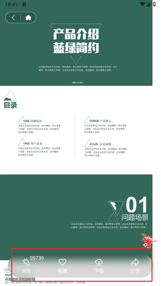 选好之后,能对PPT进行收藏、分享等操作,这些功能都是完全免费的。