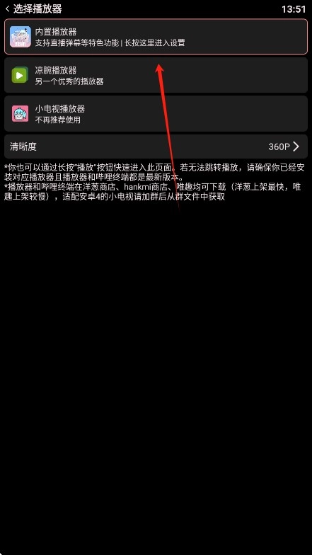 6、然后点击播放,选择播放器,这里推荐大家使用播放器。
