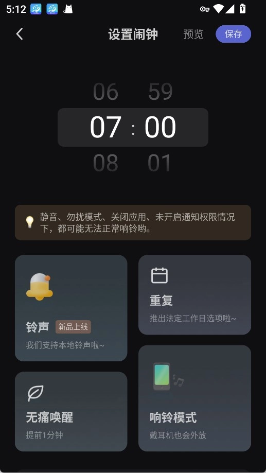 5、依据自身的作息安排,调整好时间和提醒方式,就能完成闹钟的设置了。