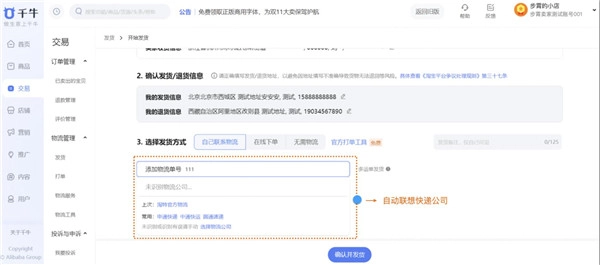 四、【发货】 1、发货列表优化升级 新增宝贝ID、运单号的订单查询方式,订单列表支持通过旺旺联系买家,同时增加修改单号功能。 2、物流公司选择更便捷 输入单号可自动匹配对应物流公司,支持快速选择上次使用及常用物流公司,还能按分类筛选快递公司,有效提升发货效率。 3、打单工具全新升级 推出一站式打单工具,实现订单打印的一键管理,发货流程更便捷高效。