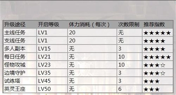 我们先来看看获取经验的途径,在不同的等级阶段,提升等级的关键有所不同。
